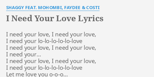 Lyrics To I Need Your Love By Shaggy Feat Mohombi Faydee Costi Discover Song Lyrics From Your Favourite Artis I Need You Love I Need You Shaggy