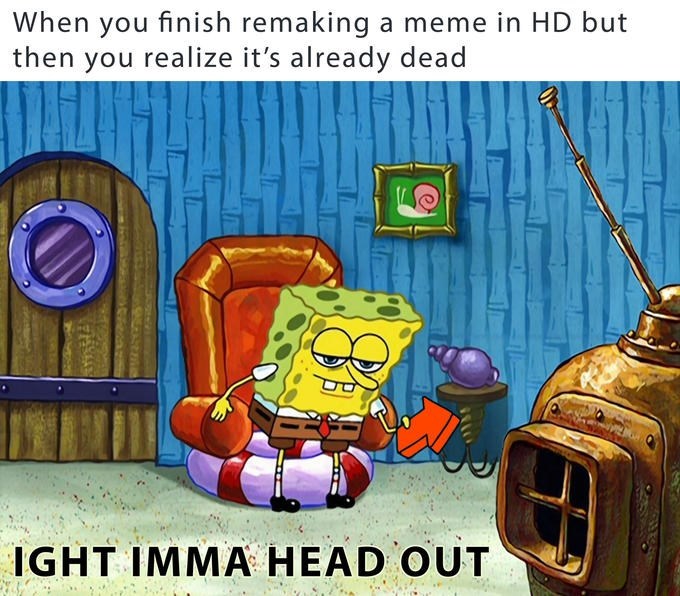 Ight Imma Head Out When You Spend An Hour Trying To Edit A Perfect Hd Crop Of The Latest Hot Meme And You Only Get 5 Upvotes Head Meme On Me Me