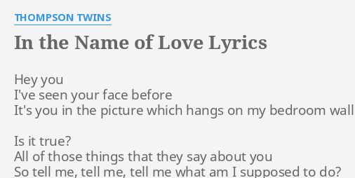 In The Name Of Love Lyrics By Thompson Twins Hey You I Ve Seen