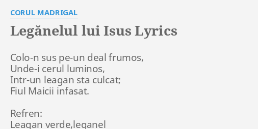 Legănelul Lui Isus Lyrics By Corul Madrigal Colo N Sus Pe Un Deal