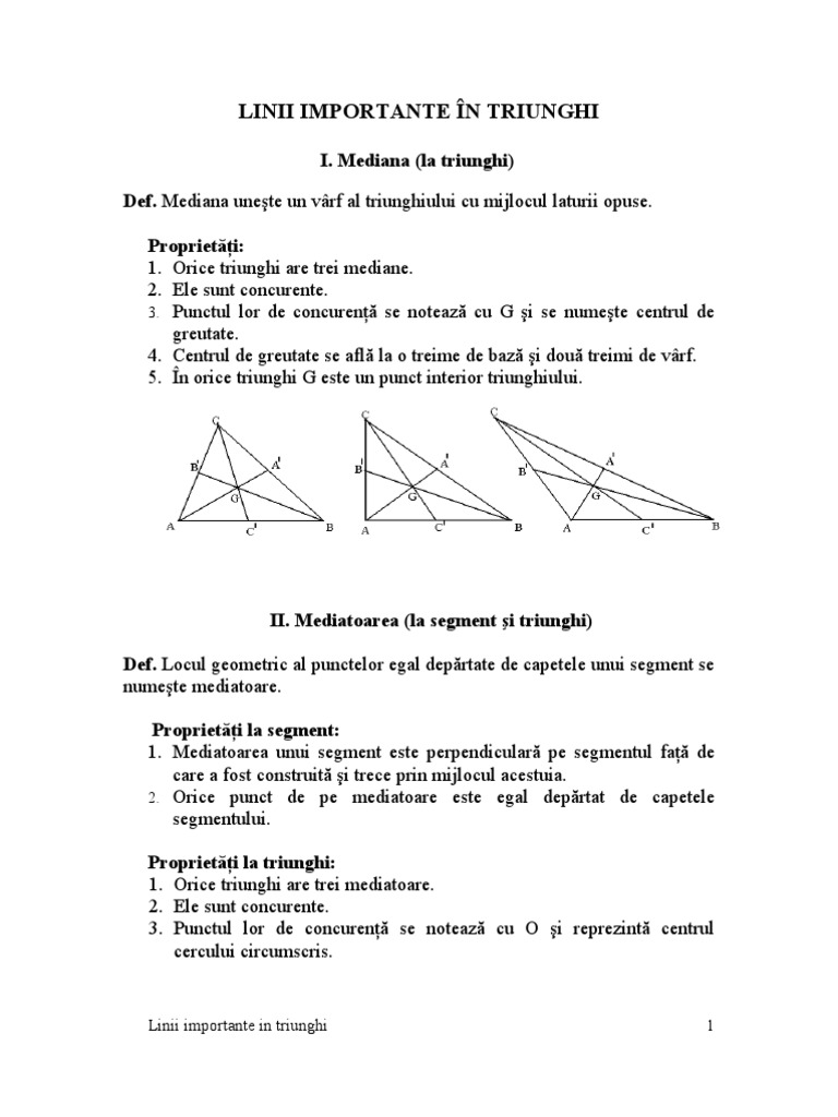 Linii Importante In Triunghi Mediana Inaltimea Bisectoarea Mediatoarea Si Linia Mijlocie Jitaruionelblog Pregatire Bac Si Evaluarea Nationala 2020 La Matematica Si Alte Materii Materiale Lectii Formule Exercitii Rezolvate Matematica