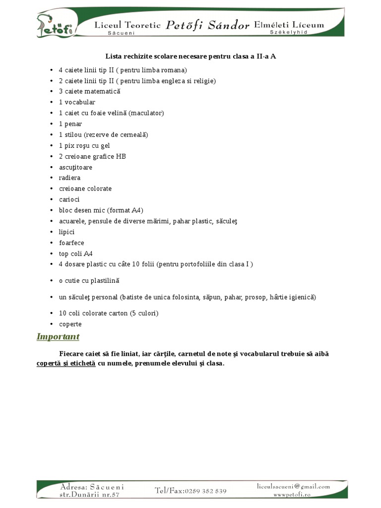 Lista De Rechizite Pentru Clasa A Iv